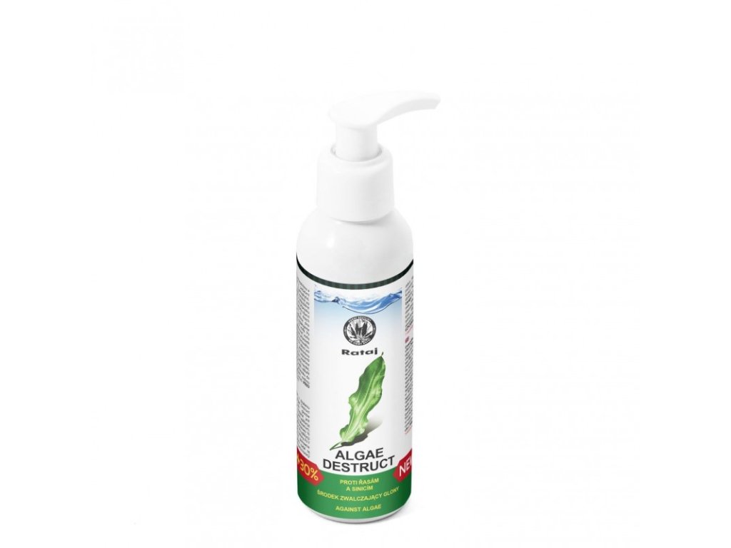 - Dávkování: Algae Destruct je určen k potlačení štětičkových řas-ruduch a sinic (Cyanophyta). Před aplikací přípravku je nutné vyměnit asi 1/3 vody v akváriu, odkalit dno a vyčistit filtr v odpuštěné akvarijní vodě. Dávkujeme jednorázově 10 ml přípravku na 20 l akvarijní vody. Po aplikaci se voda v akváriu zbarví žlutozeleně. Přípravek neškodí rybám. Po 14 dnech vyměníme 1/3 vody v akváriu, opět odkalíme dno a vyčistíme filtr. Pokud výskyt řas přetrvává, zopakujeme aplikaci a po 14 dnech opět vyměníme 1/3 vody.