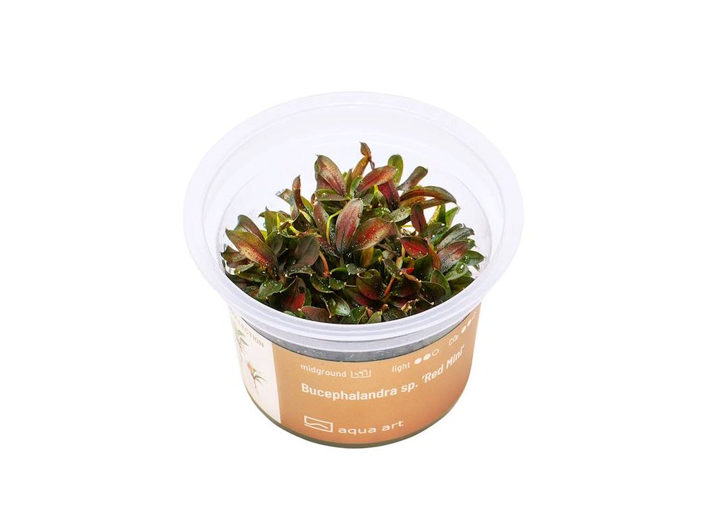 Vysoce okrasný druh bucephalandry s malými, hnědočervenými listy. Roste vzpřímeně a může se větvit. Je to epifyt, proto by se měl sázet na kořeny nebo kameny. Sázení do země se nedoporučuje. Má velmi zajímavé, třpytivé barvy.