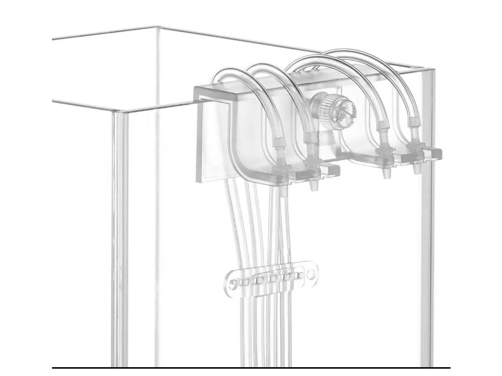 Dosing Tube Holder X je vylepšeným instalačním kitem hadiček pro již známý Chihiros Dosing System. Tento kit nabízí širší rozestup dávkovacích hadiček, méně míst pro uchycení usazenin a lepší celkovou údržbu. Manuálně regulovatelný držák je příjemnější na instalaci, a hodí se i k akváriím větších rozměrů.