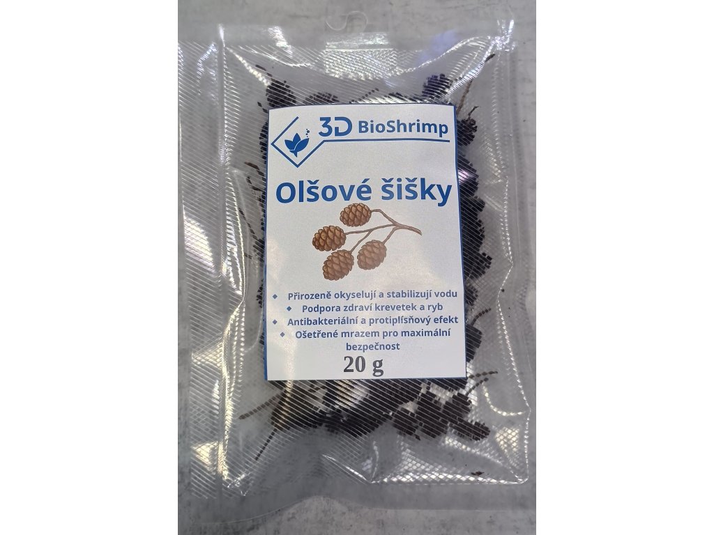 Olšové šišky jsou 100% přírodní prostředek pro úpravu akvarijní vody. Uvolňují třísloviny a huminové kyseliny, které podporují zdraví ryb a krevetek, jemně okyselují vodu a působí antibakteriálně i protiplísňově. Vytvářejí prostředí podobné přirozeným biotopům a dodávají vodě přirozený jantarový odstín.