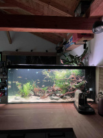 Akvárium: 154x50x60 cm (460 l) , 10 mm optiwhite sklo, lepené černým silikonem, včetně přepadové komory se třemi vrtanými otvory ve dně.