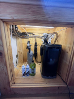Součástí dodávky bylo zrušení původního akvária, výroba nového, dovoz, instalace a uvedení do provozu, umístěno na předpřipraveném nábytku jakožto součást kuchyňské linky, kde jsme však museli udělat několik výřezů.