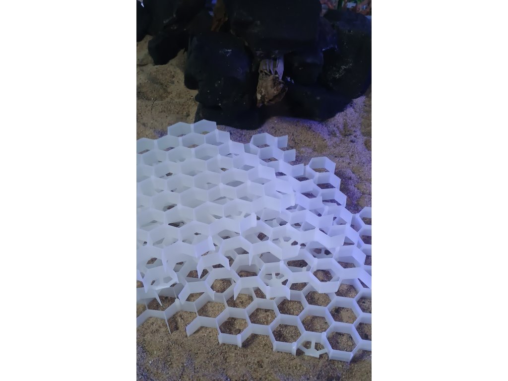 Prvním krokem je zafixování mřížky v akváriu. Vybereme vhodné místo, upravíme rozměry mřížky, nanečisto si layout poskládáme (již přilepené dekorace a mřížka se špatně odstraňují), řádně vyčistíme plochu na kterou budeme mřížku instalovat a následně ji přilepíme pomocí lepidla či silikonu. Lepidlo necháme zaschnout do ztvrdnutí.