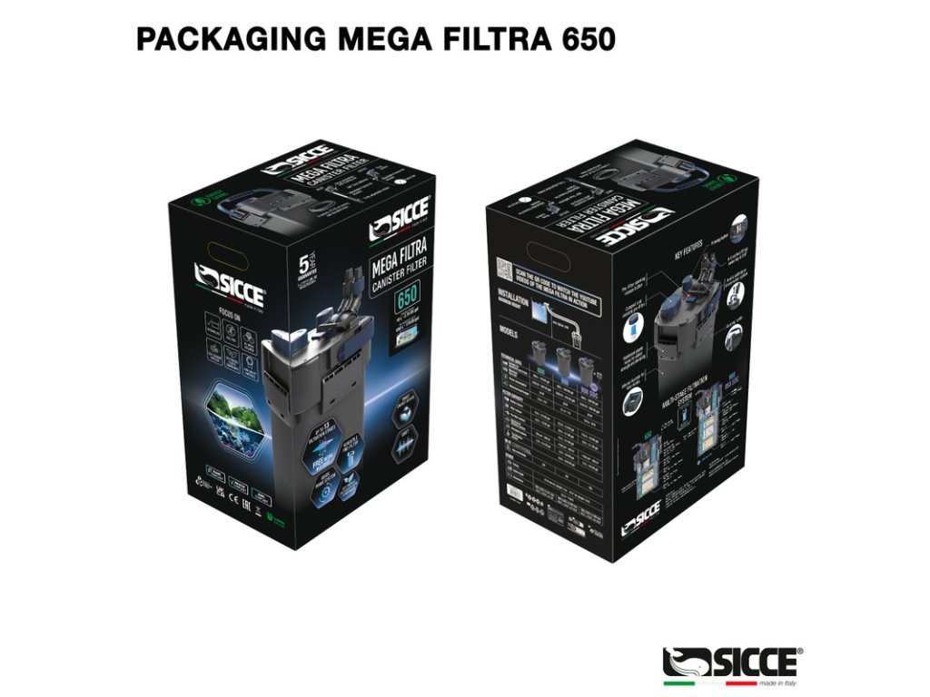 - 10 až 13 fází filtrace: Komplexní mechanické, biologické a chemické čištění. Každý filtr je předem naplněn špičkovými médii Sicce (Biofoam, Aquamat, Hypercarbo, Hyperzeo a Bioker).