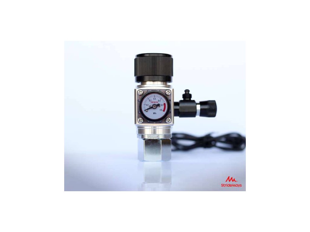Velmi kvalitní set od firmy Strideways, který obsahuje: Láhev , redukční ventil, elektromagnetický ventil, jehlový ventil a bublinkoměr.